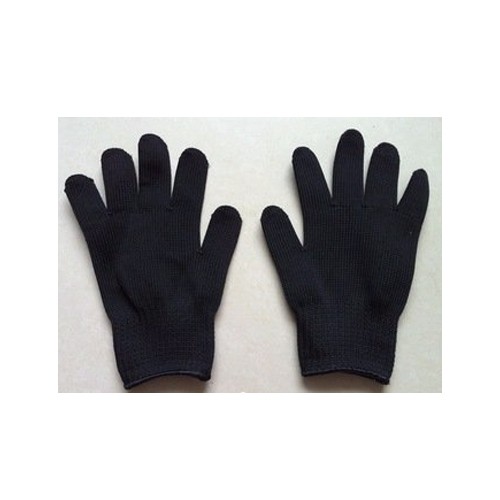 防割手套采用0.08mm不锈钢为芯丝外包超高分子量聚乙烯纤维制成的包覆纱,使用2根包覆纱做表层。加涤纶低弹丝为里层编织而成。在保证防割要求的条件下,增强了手套的柔软度。加大了警员佩带使用时的舒适性。手腕、手掌、手背、手指等处于防割层的覆盖范围内,材料的颜色一致,性能稳定,无毒、易戴、易脱、透气、触感好、不影响关节弯曲。是警务人员在执行任务、处理突发事件时自身防护的理想产品。