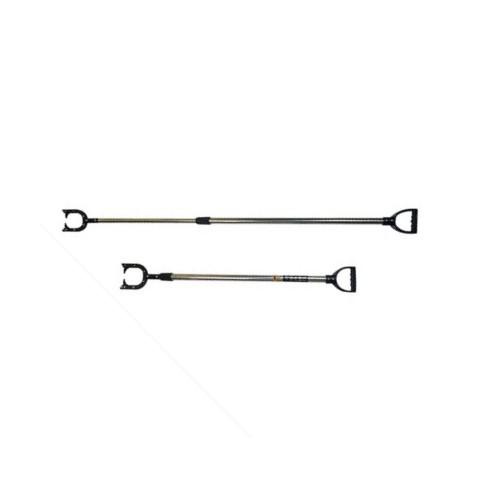 长度:1米--1.5米。如遇暴徒手中带刀或凶器时,只需将钢叉朝对方的手或脚戳了过去,对方不及躲闪,手或脚便会瞬间被U字型卡口上的两个卡子卡住,两个卡子随即反弹回去,将暴徒的手或脚死死地套在了U字形叉子里面,动弹不得,便立即将暴徒制服抓住。